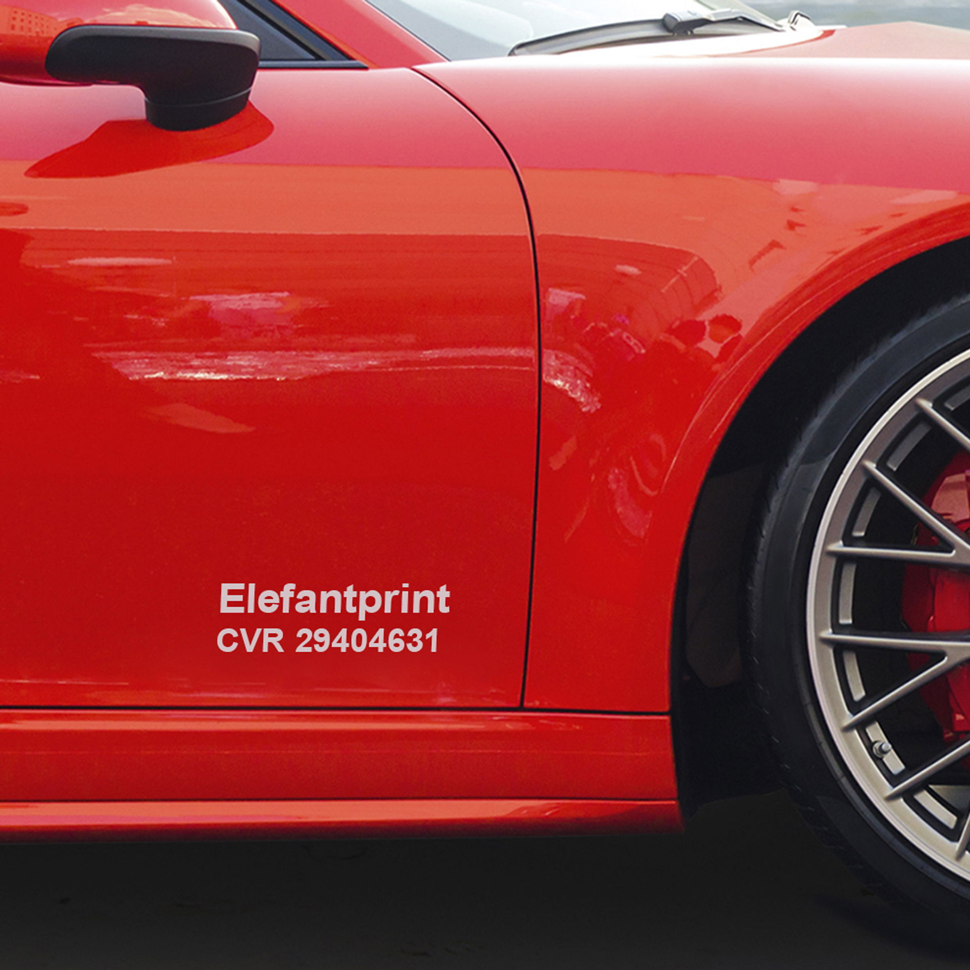 Printet af firmanavn og CVR nummer på firmabiler leveres som en folie, der er nem at klistre på bilens yderside.