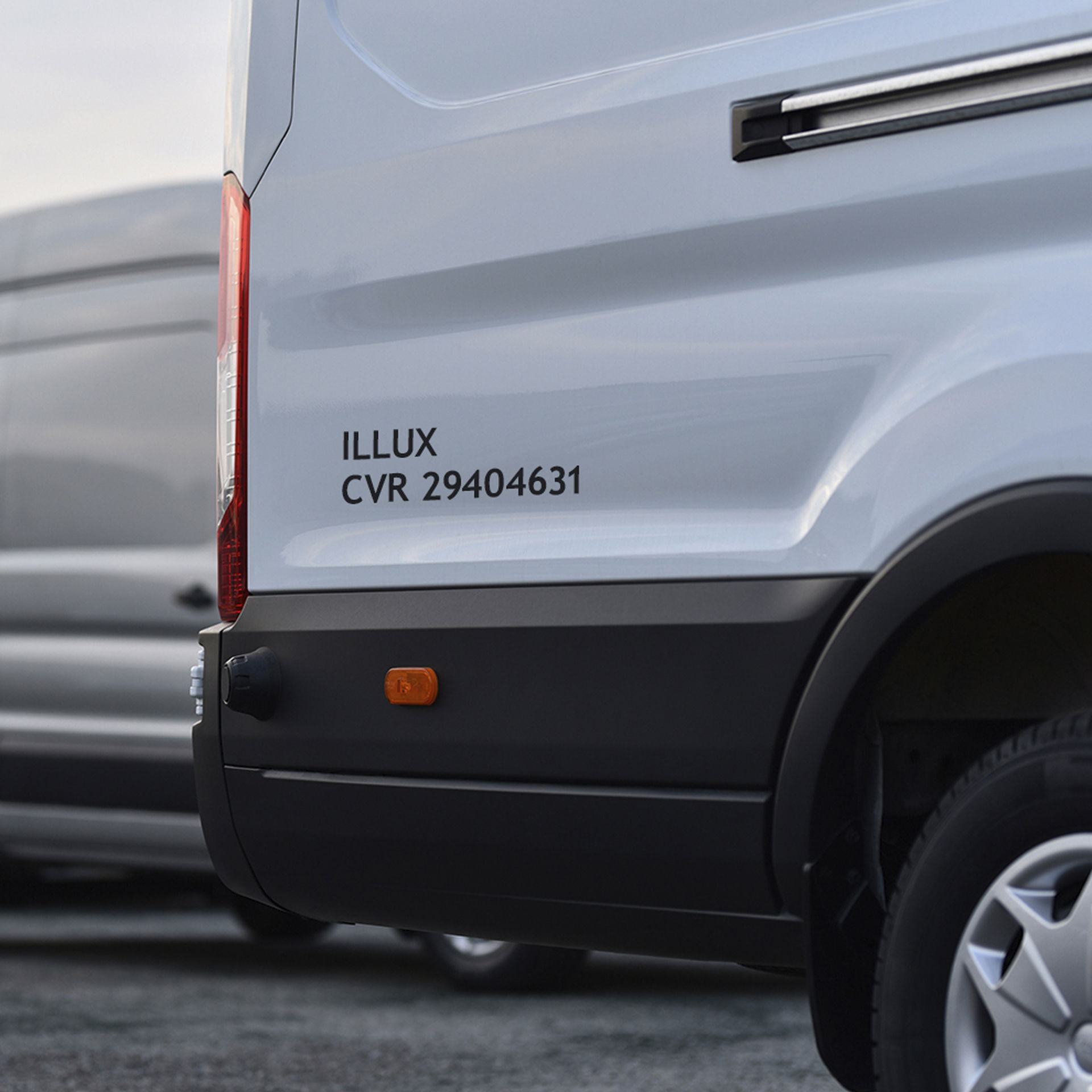 - Bilerne skal være forsynet med virksomhedens navn eller logo samt CVR-nummer.