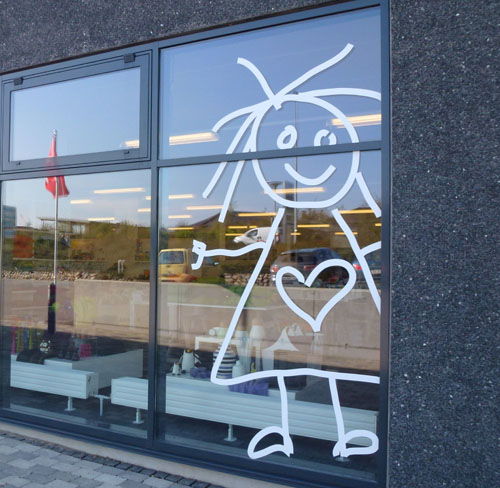Dette figurskårede folie er beregnet til montering på ydersiden af vinduet, hvilket giver et tydeligere budskab end ved montering på indersiden. En applikationsfilm er monteret på folien for at lette opsætningen.