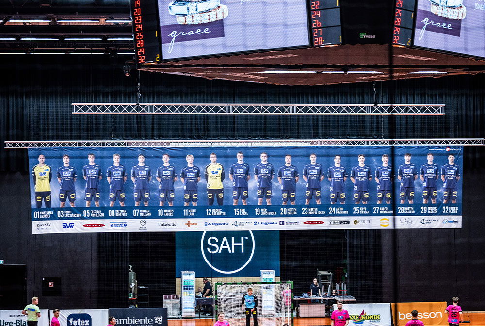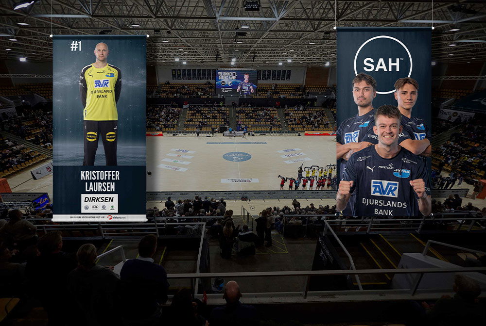 Vi er glade for at kunne støtte holdet og skabe en stemning, der inspirer både spillere og fans! Oplev både spillere og bannere i hallen på Fælleden og i Djursland Bank Arena i Aarhus.