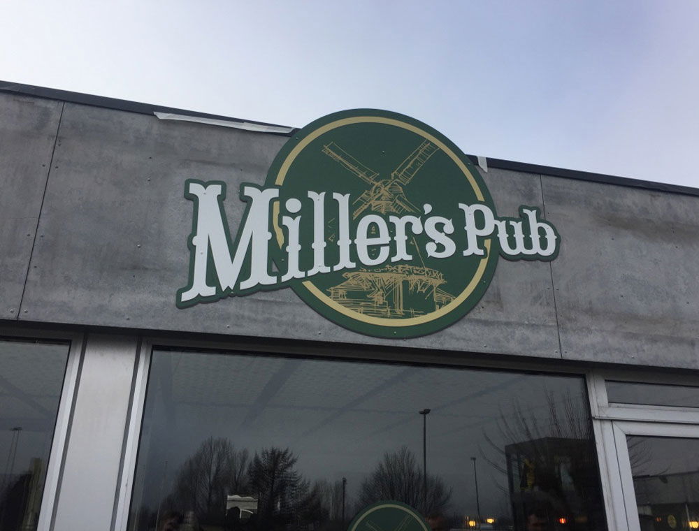 Millers Pub stod over for åbningen af deres nye sportsbar, og de kontaktede i den forbindelse Elefantprint for assistance til udsmykning af facaden og omgivelserne indendørs.